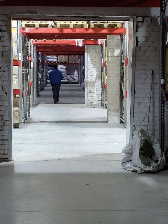 Склад располагается на 1 этаже, высота потолков 6 м, бетонный пол, сетка колонн: 08x08, одна мокрая точка. Внутри типовой ремонт, вход в помещение - отдельный с улицы, общая площадь здания 5500 м2, здание полностью функционирует.