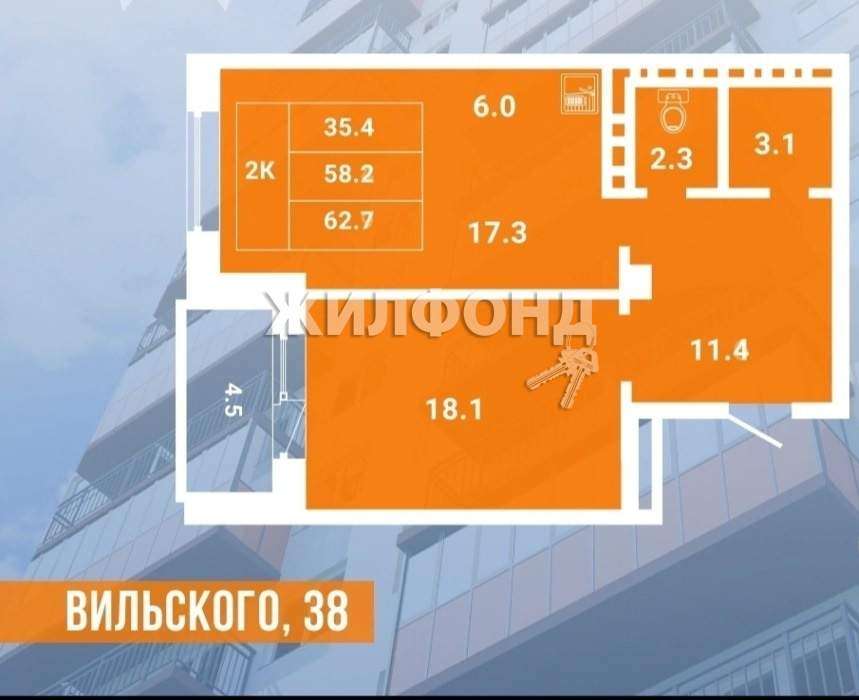 Продажа 2-комнатной квартиры, Красноярск, Вильского ул., 38, Красноярский край