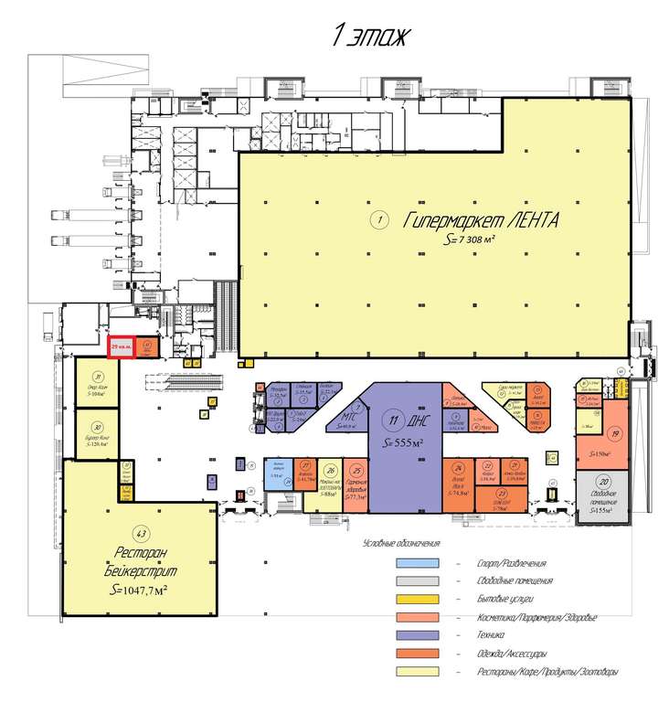 Помещение площадью 29 м2 подойдет для розничной торговли, собственного производства (например, кофейни) или оказания услуг. Первичная зона охвата — 150 000+ человек (целевая аудитория с доходом средний и выше) .